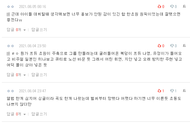 | 소속사에서 데뷔 안 시킬 것 같다는 아이즈원 멤버 (0) | 2021.08.07 |