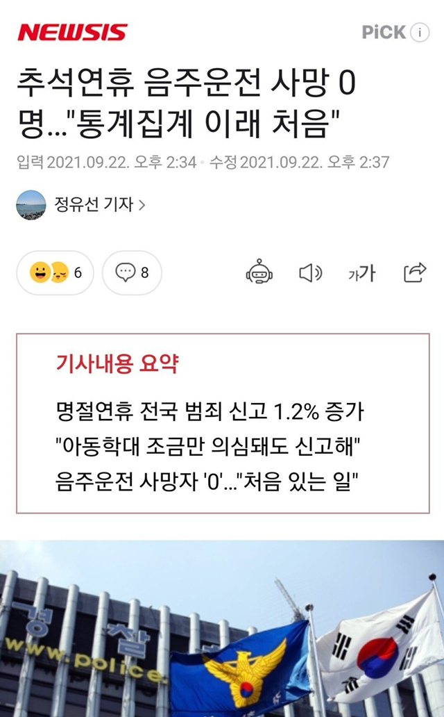 추석 연휴동안 음주운전 사망 사고 처음으로 0명 ㄷㄷ