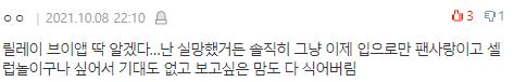 | 성훈 장원영 얼굴합 안 맞다 하는거 (0) | 2021.10.14 |