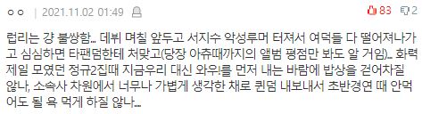 | 참다참다 터진 세븐틴 도겸 팬들이 한 말 (0) | 2021.11.07 |