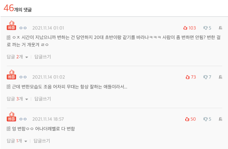 다들 나이 먹으니까 성숙해지는 건 당연한 거고 언제까지 하이틴만 할 순 없잖아