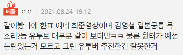 | 하연수 유튜브 댓글 이거 뭐임 ?? (0) | 2021.08.29 |